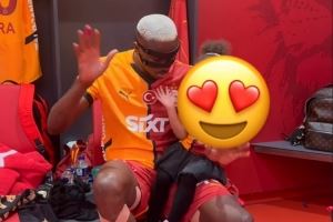 奥斯梅恩社媒晒出身穿加拉塔萨雷球衣与孩子在更衣室内玩耍的视频,他上赛季被外租加拉塔萨雷期间出战41场比赛,打进37球,助攻8次。