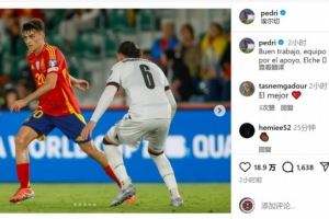 佩德里社媒庆祝世预赛取胜:干得漂亮,感谢球迷的支持